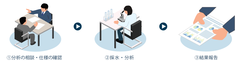 - 試料の採取方法の詳細につきましては、別途弊社営業担当よりご案内いたします。お気軽にご相談ください。